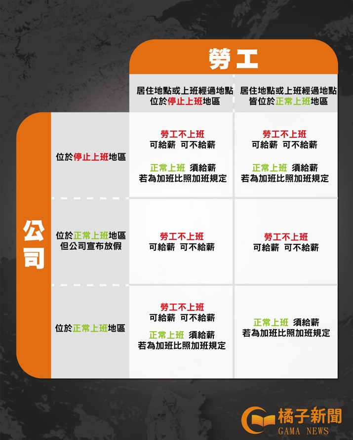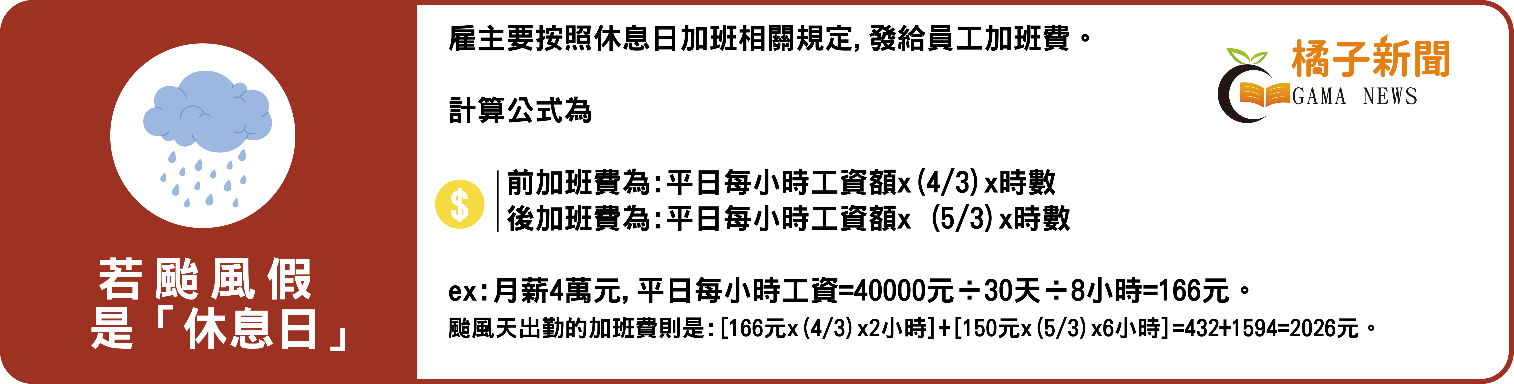 同時,勞工若因安全考量選擇不出勤,雇主不得以此懲處、記曠職、扣除全勤獎金或影響績效評比。惟由於勞工未提供勞務,雇主得依法不支付當日薪資。勞動部強調,「颱風假不是假」,而是因不可抗力導致工作中斷的安全性措施。呼籲各事業單位與勞工在颱風期間以人身安全為最優先,共同落實防災應變,確保勞動權益與公共安全兼顧。