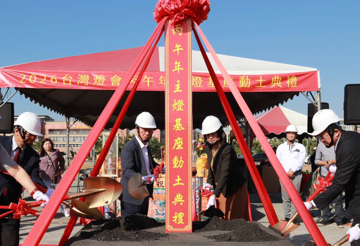 「2026台灣燈會」將於明(115)年3月3日至3月15日於嘉義縣盛大登場,規劃「主展區」及「地方展區」(嘉義縣政府前廣場及周邊場域)兩大區域。今(6)日於主燈設置預定地舉行「主燈基座動土儀式」,由交通部觀光署陳玉秀署長與嘉義縣長翁章梁率領工作團隊共同祈福,祝願燈會施工順利、活動圓滿成功,也為明年全台最受矚目的燈光盛會揭開序幕。