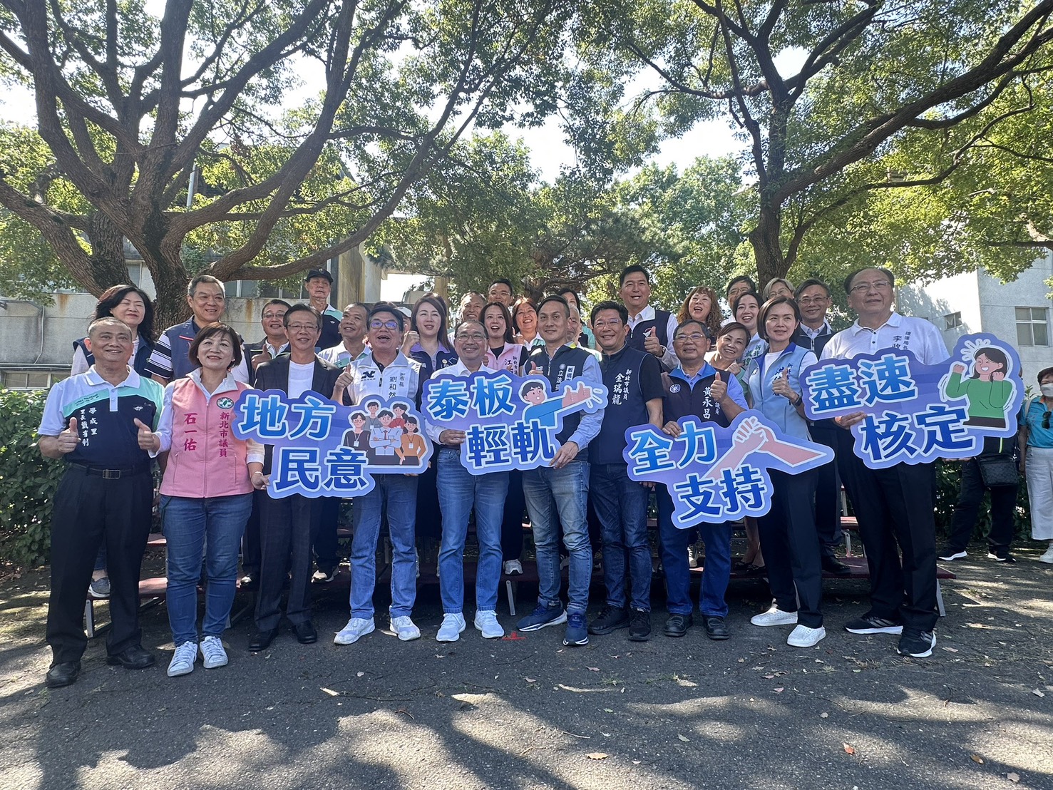 侯友宜強調,泰板輕軌可研自2023年5月首次送審至今,即將第五度送審。地方民意全力支持,完工後可紓解區域交通瓶頸,並帶動產業及住宅發展。捷運局已完整說明修正內容,盼中央盡速審核,確保工程順利推進,讓市民早日享受便利大眾運輸。