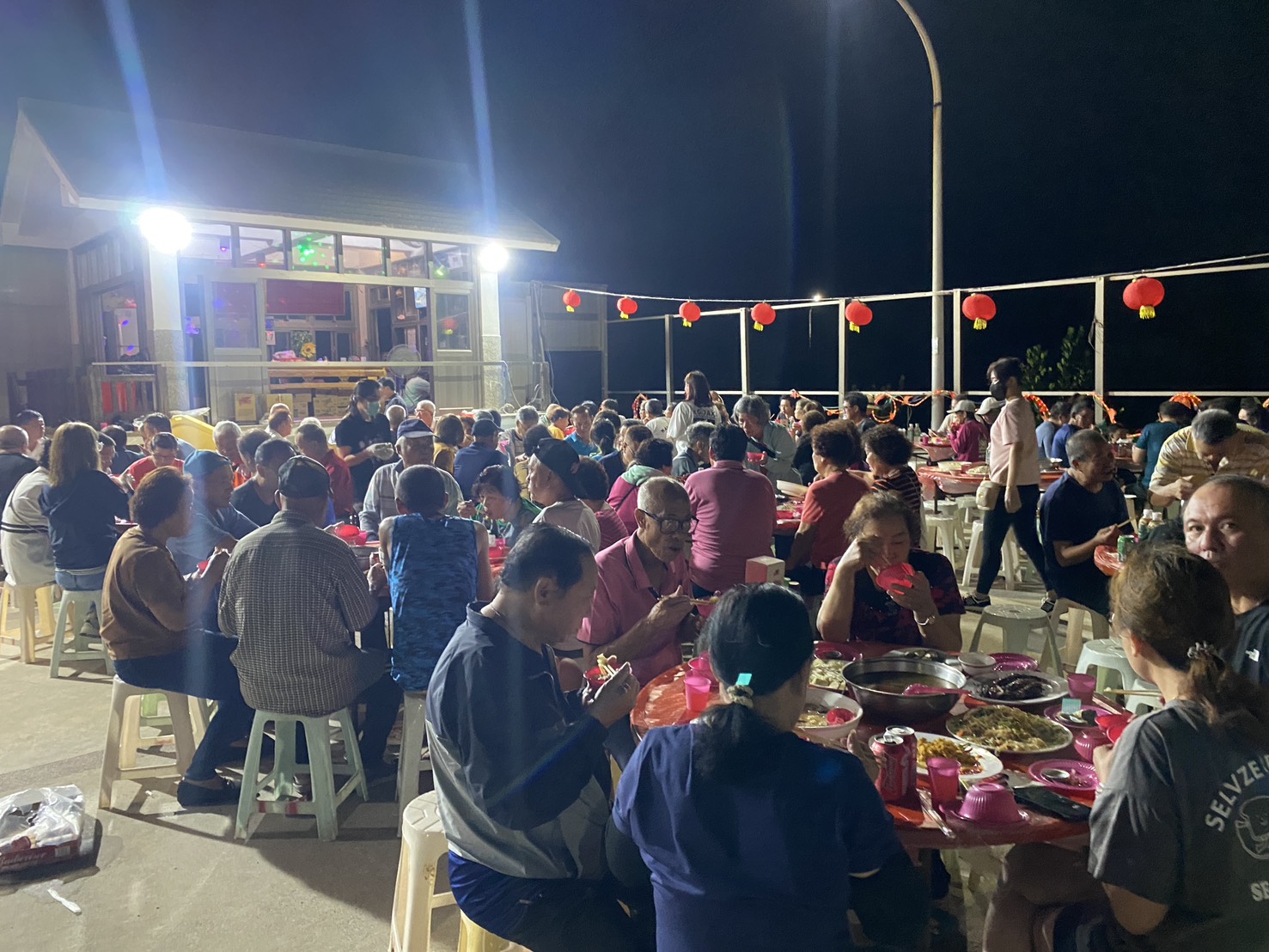 晚間,縣長陳光復與鄉親齊聚福德祠前廣場,共同參加平安宴。席間氣氛熱絡,縣長也與民眾親切互動,傾聽地方建設意見,強調縣府將持續投入資源推動基礎建設,讓七美成為更宜居、宜遊的海島聚落。