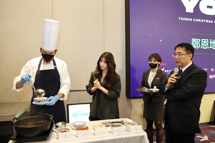 黃偉哲表示,臺南向來以深厚人文底蘊與豐富美食聞名,誠摯歡迎來自各國的優秀音樂人造訪演出,期盼透過精彩舞台,為市民與歌迷帶來難忘的耶誕音樂饗宴。他也向藝人介紹牛肉湯、鱔魚意麵等臺南代表性美食,邀請大家在停留期間多加走訪,深入感受臺南的城市魅力。