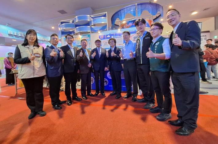 本次市府主題館共有八個局處參與。經濟發展局以「SBIR創新研發成果」為主題,展出低碳節能、數位轉型、金屬機械、民生化工、運動健康與創新服務等領域成果,包括低碳製程塑膠色母粒、回收再利用研磨絨盤、自動化食品產線、能源車變速箱、無人化生產設備、生質碳黑母粒、上肢復健系統及運動光學眼鏡等,顯示中小企業透過AI技術強化研發能量與轉型速度。