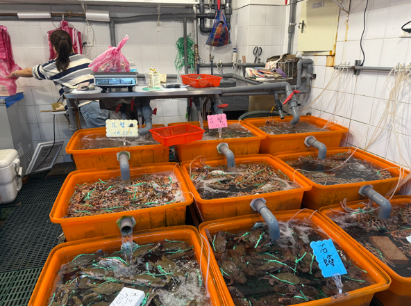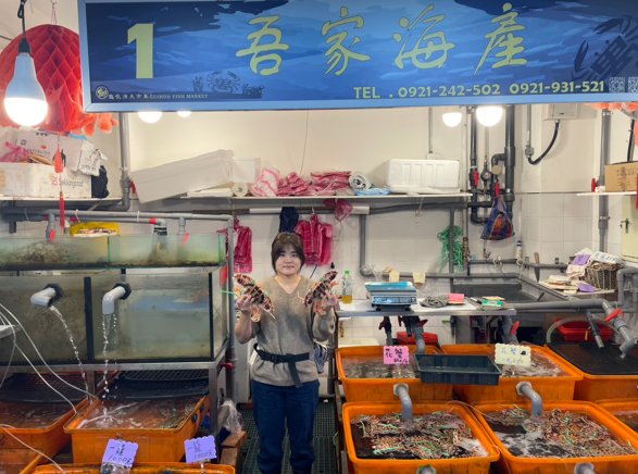 龜吼漁夫市集共有27家生鮮攤位,各具特色。其中1號攤位「吾家海產」由年僅23歲的漁二代吳小姐經營。她父親是萬里在地漁船主,曾獲全國模範漁民殊榮。吳小姐為分擔母親的工作,從零開始學習供貨、訂價、商品陳列及販售,逐步建立完整營運模式。她指出,攤位販售自家漁船捕撈的海產,價格相對親民,每週一固定公休,並視漁船作業情況營業,歡迎民眾前來選購最鮮甜飽滿的萬里蟹。