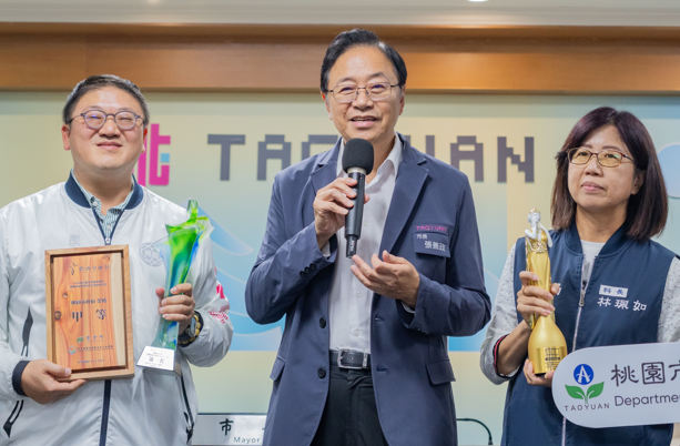 桃園市長張善政今(12)日下午主持市政會議,接受農業局報告,桃園市在國際與國內舞台雙雙獲獎,包括「2025美國謬思創意大獎」兩項金獎,以及農業部「農再卓越獎全國第二組第一名」與「甲等績優縣市」等殊榮。張市長表示,桃園農業不僅在國內屢獲肯定,也受到國際認可,顯示市府在品牌塑造與活動創意上的努力卓有成效。