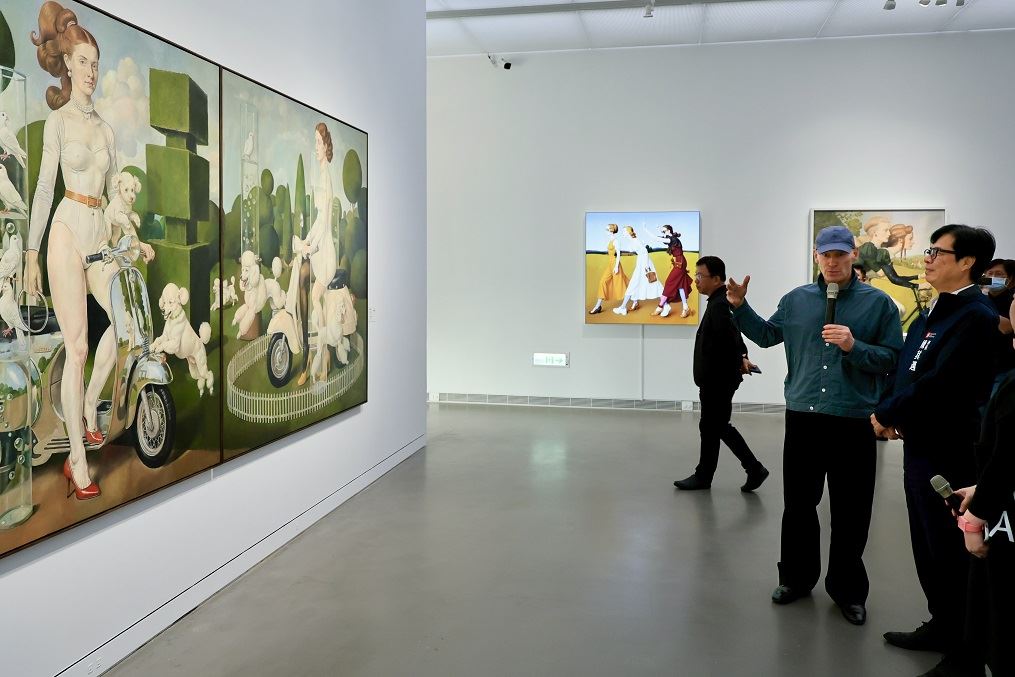 陳其邁表示,高美館成為馮.沃爾夫在亞洲的首場大型個展場域,不僅象徵城市文化能量獲得國際肯定,也展現高雄在推動國際交流上的積極成果。他指出,本次展覽完整回顧藝術家20多年創作軌跡,從古典藝術語彙到當代科技語境,皆展現其極具哲思的藝術視野與多層次文化辯證。